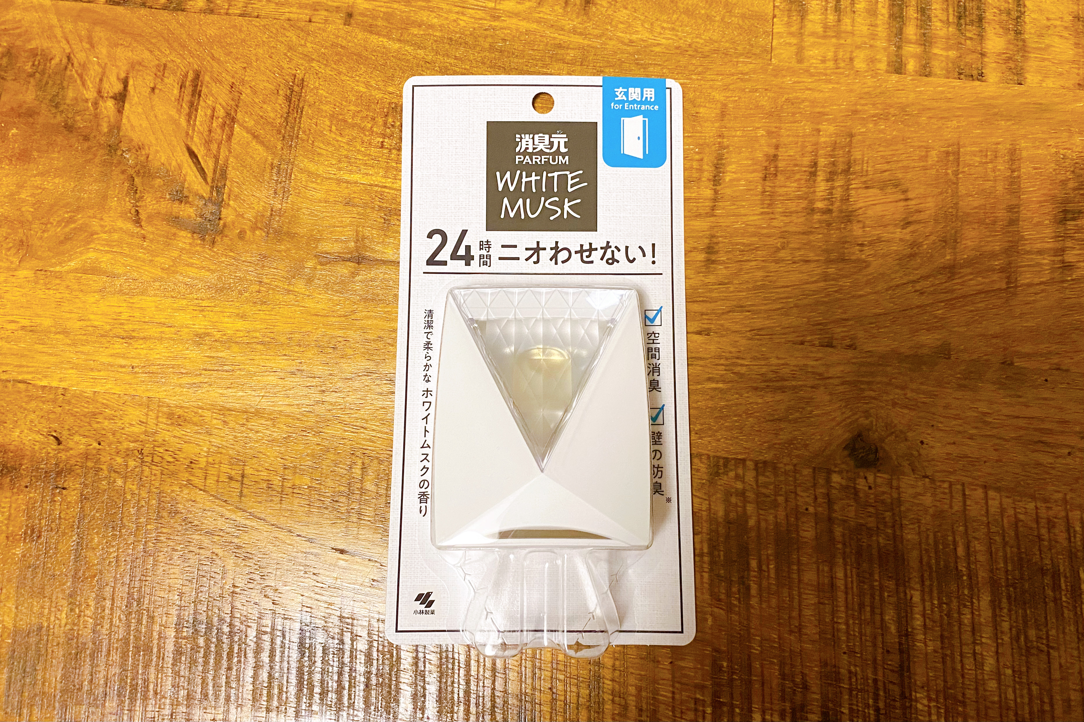 また、玄関の臭いもなんとかしないと家に誰も呼べないので、「消臭元パルファム ホワイトムスク 玄関用」も購入。