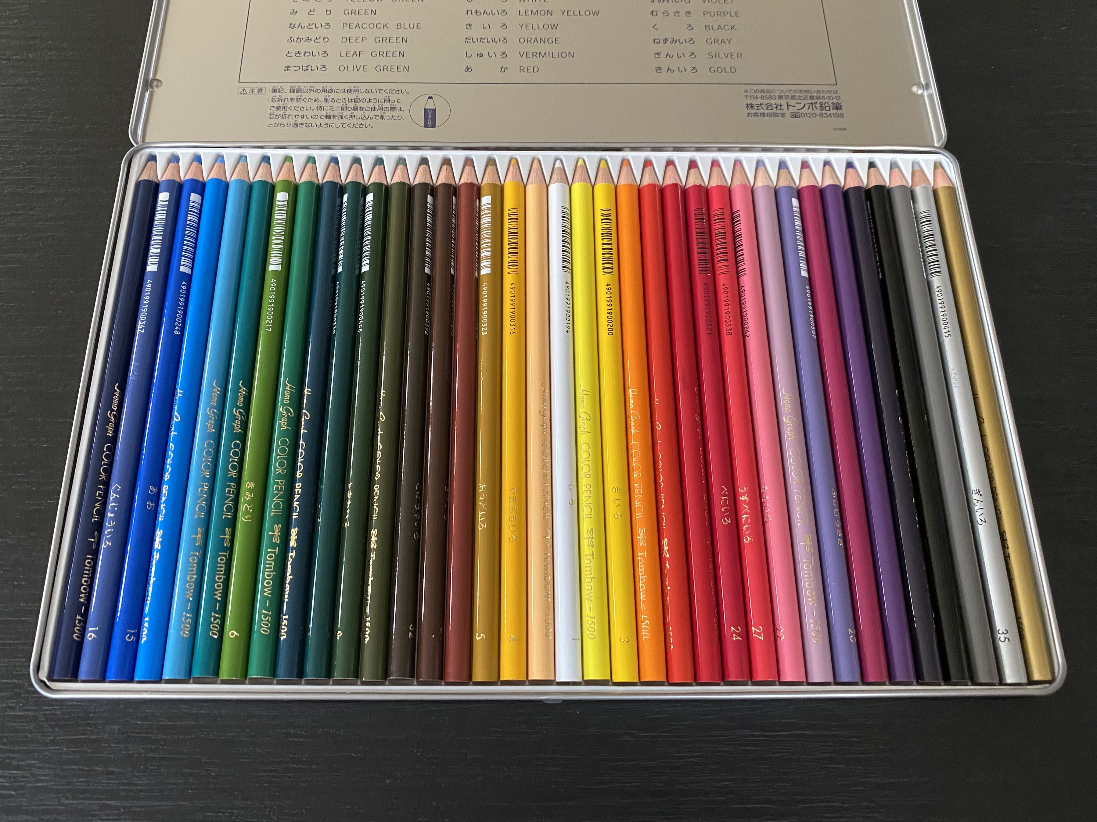 本格的にぬり絵をするならきちんと色鉛筆を揃えようと思い、トンボ鉛筆の「缶入色鉛筆36色」を購入しました!
